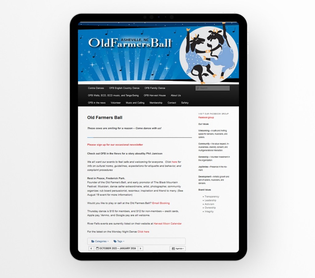 “Given the opportunity, I would love to work with Athena again. She took a tired, desktop-oriented website and turned it into a vibrant smartphone destination for The Old Farmer’s Ball. With an updated logo, the logo colors flow through the website. With her understanding of modern WordPress themes and graphics, a single meeting was all that was necessary to update the website.”